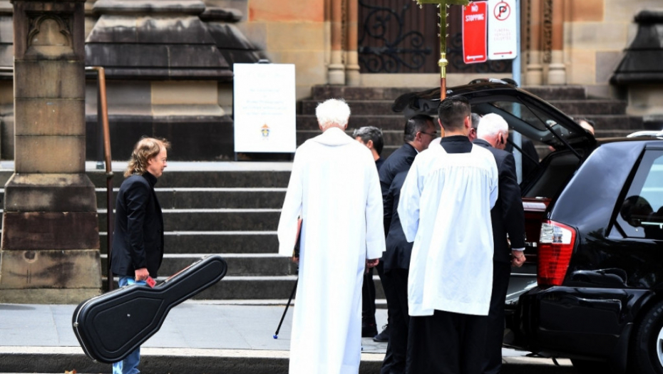 Nakon što je kovčeg unet u pogrebni automobil, Angus je na njega položio gitaru.