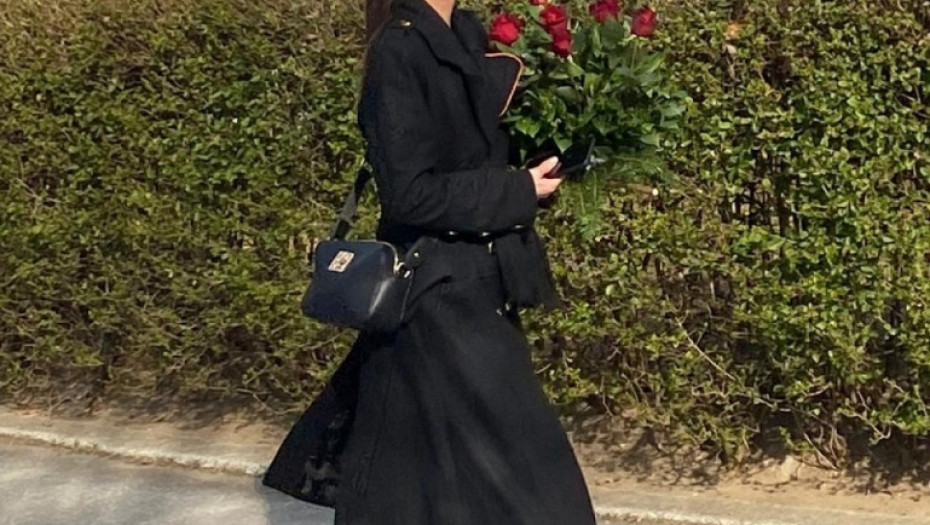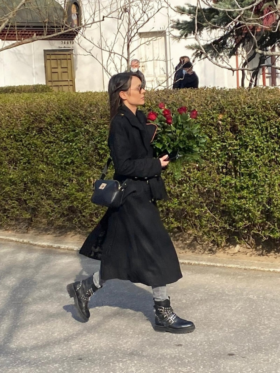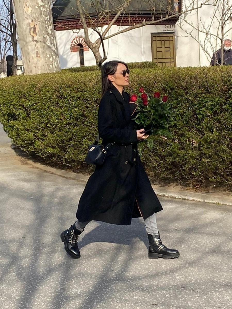 Mlada glumica Dragana Mićalović ni na dan Borisove smrti nije krila koliko je očajna. Ona se danas pojavila na groblju odevena u crno sa velikim buketom crvenih ruža.