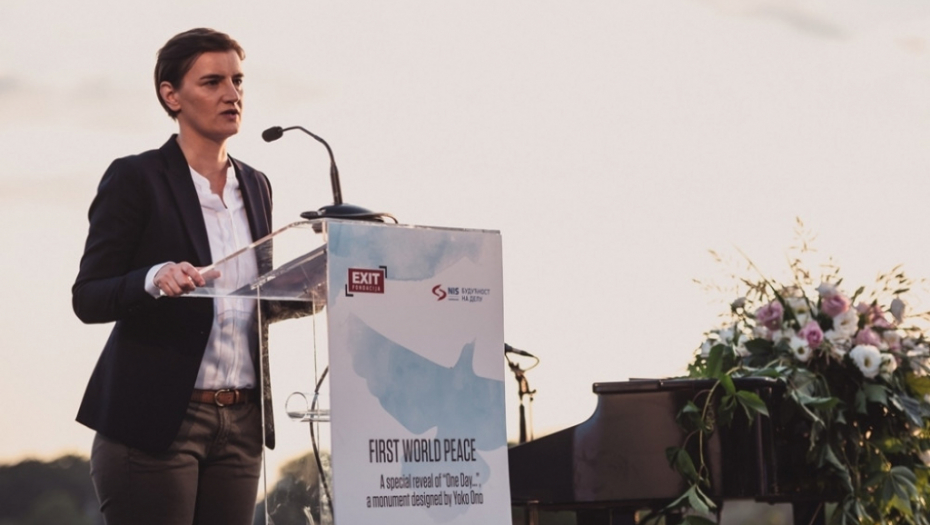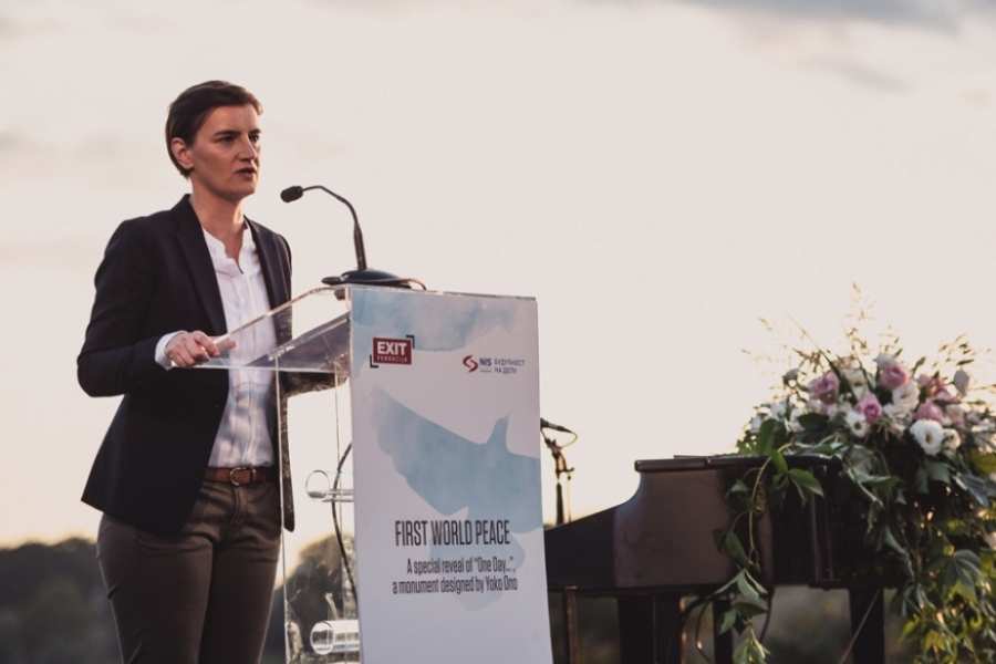 Brnabić je rekla da Novi Sad odlikuju odlični ljudi, fantastične ideje i kreativnost. "Spomenik koji se danas otkriva, podsetnik je da nam je mir danas potreban više nego ikad. To je jedna od osnovnih vrednosti i temelj na kojima počiva moderna Evropa", izjavila je predsednica Vlade u obraćanju i dodala da je Evropska unija pre svega mirovni projekat. Brnabić je istakla da ćinstalacija Joko Ono dati ogroman doprinos promociji Novog Sada i Srbije kao zemlje posvećene miru, otvorene za stvaranje, umetnost i toleranciju.