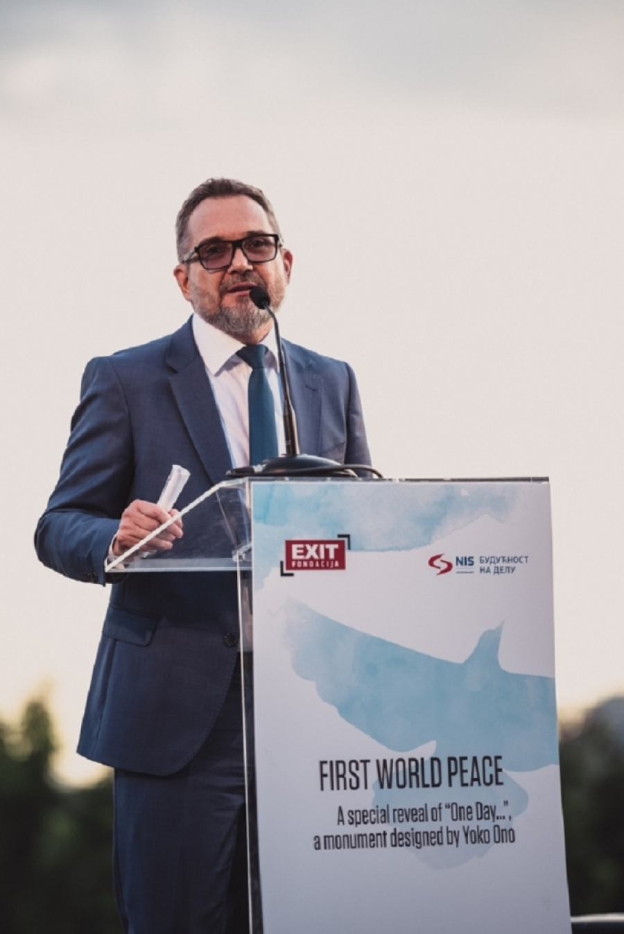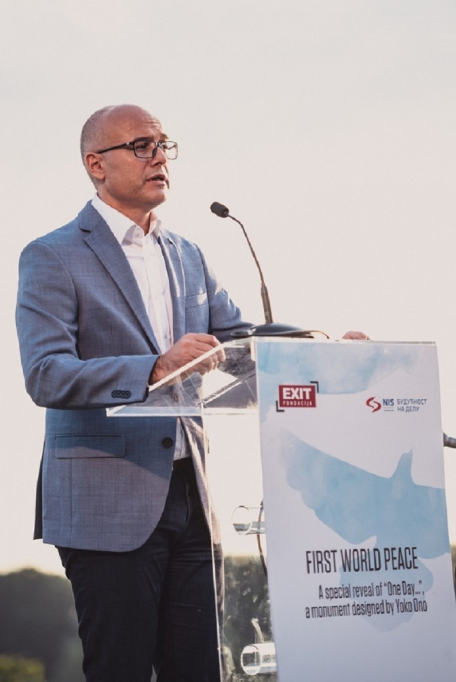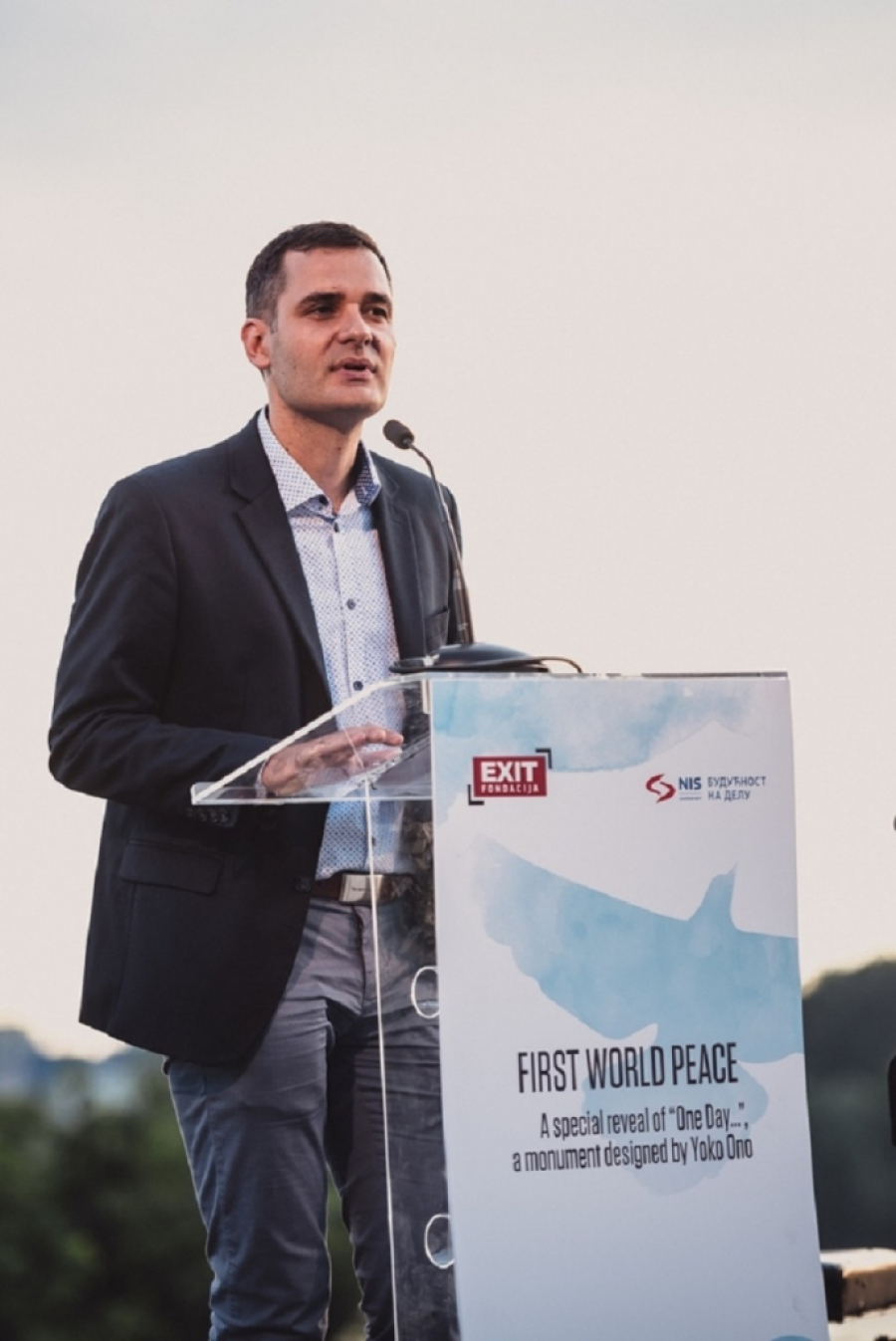 “Mi danas imamo sreću da živimo u vreme mira. Imajući u vidu tu srećnu okolnost, kao društveno odgovorna kompanija nastojimo da stvorimo kvalitetne uslove za život u zajednici u kojoj poslujemo. Projekat "Prvi svetski mir“ EXIT fondacije, podržali smo u saradnji sa Gradom Novim Sadom, u okviru našeg programa „Zajednici zajedno“, koji je nastao sa ciljem poboljšanja kvaliteta života u sredini u kojoj poslujemo. Posebno nas raduje partnerstvo sa Gradom Novim Sadom, u kome se nalazi i sedište naše kompanije. Mi smo svesni svoje uloge u ovom društvu, a to je da plodove uspešnog poslovanja podelimo sa zajednicom u kojoj živimo i stvaramo. U tom smislu, NIS će uvek biti tu da podrži realizaciju dobrih ideja, ali i da promoviše prave vrednosti”, izjavio je Vadim Smirnov, zamenik Generalnog direktora NIS-a.