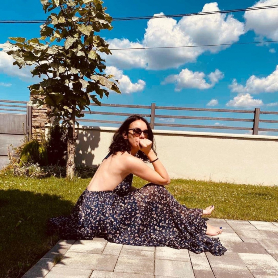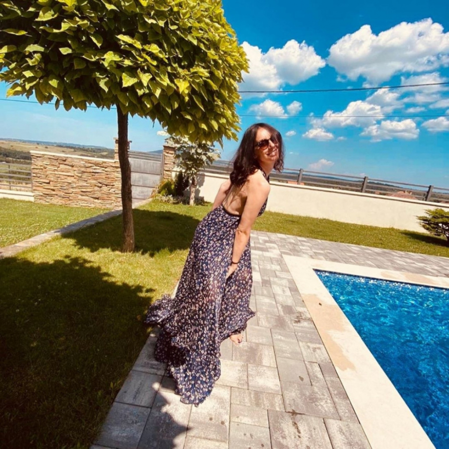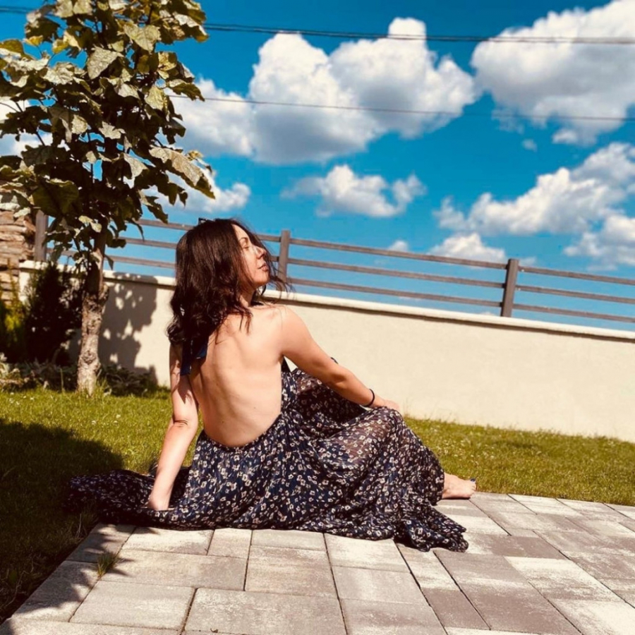Sloboda je pozirala u letnjoj lepršavoj haljini sa otvorenim leđima, sa širokim osmehom i bez trunke šminke, dok su prizoru poseban pečat dali zelenilo i bazen.