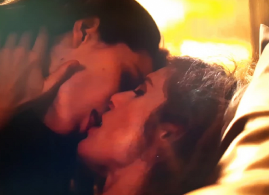 Scena počinje tako što najpre dodiruju jedna drugu, počinju da se ljube, a zatim skidaju svu garderobu sa sebe i potpuno nage nastavljaju da razmenjuju poljupce i nežnosti, te imaju intimni odnos.
