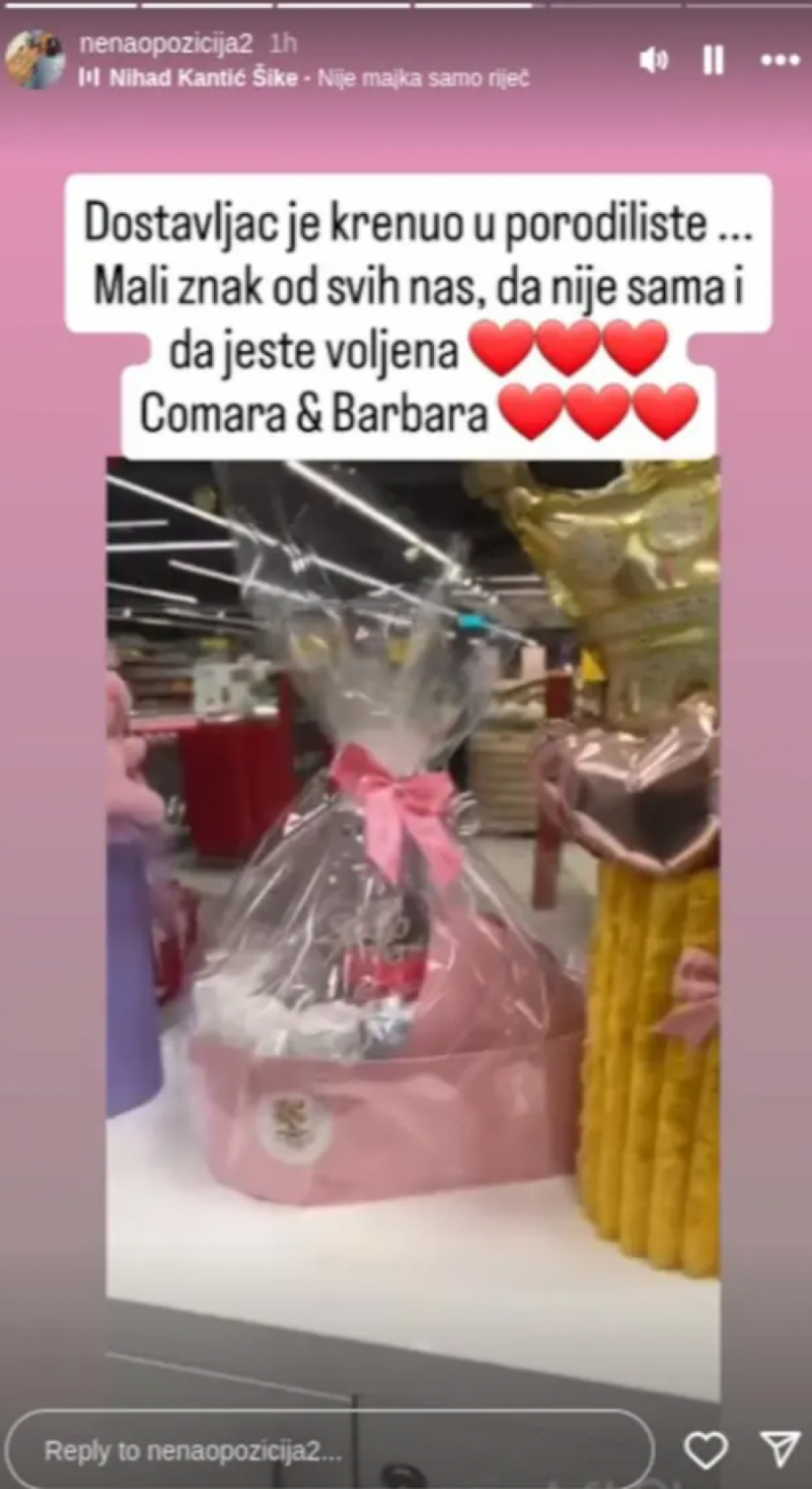 Milica je fotografisala ruku svoje ćerke Barbare kako je drži za prst, takođe je u pozadini dodala pesmu Željka Samardžića: "Nisi ti za male stvari".