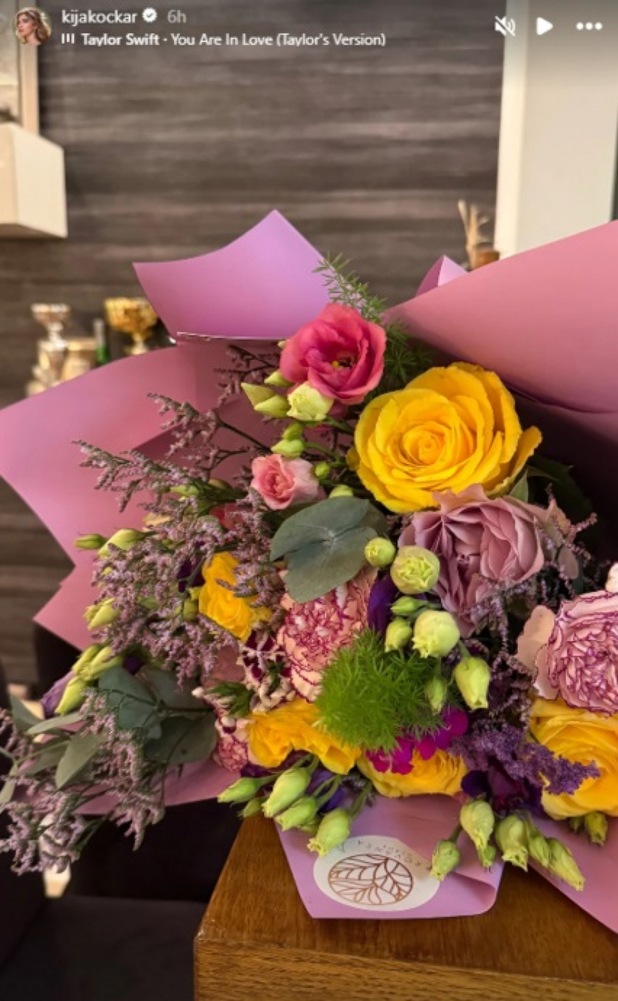 - Aaa, šta me je sačekalo. Eto, okeani ne smetaju, ali ni to da smo se pozdravili pre deset sati - navela je ona, uz emotikon srca, te pokazala fotke na kojima vidimo lep buket.