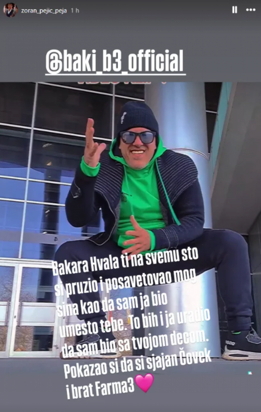 Nedavno izbačeni iz "Elite 8" Baki B3 kroz celo svoje učešće bio je nerazdvojan sa Jovanom Pejićem Pejom, a gostujući u emisiji pričao je o detaljima njihovog druženja.