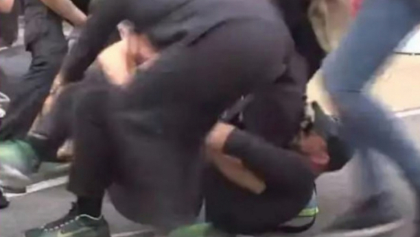 U naletu besa Kristijan je skočio na Tomovića, a obezbeđenje je pokušavalo da ih razdvoji.
