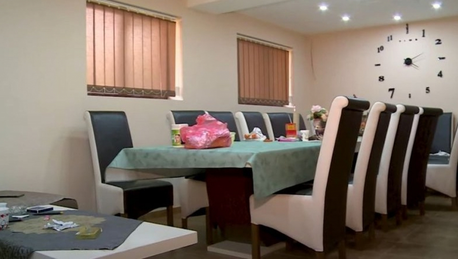 U trpezariji je veliki sto sa kožnim stolicama, a zid krasi neobičan sat sačinjen od brojeva koji su samo nalepljeni zid i zauzima veći deo svetle površine. Izvan kuće je metalna ograda, a odmah pored njih su komšije. Iza kuće, kako se vidi na fotografijama, je gomila starih stvari.
