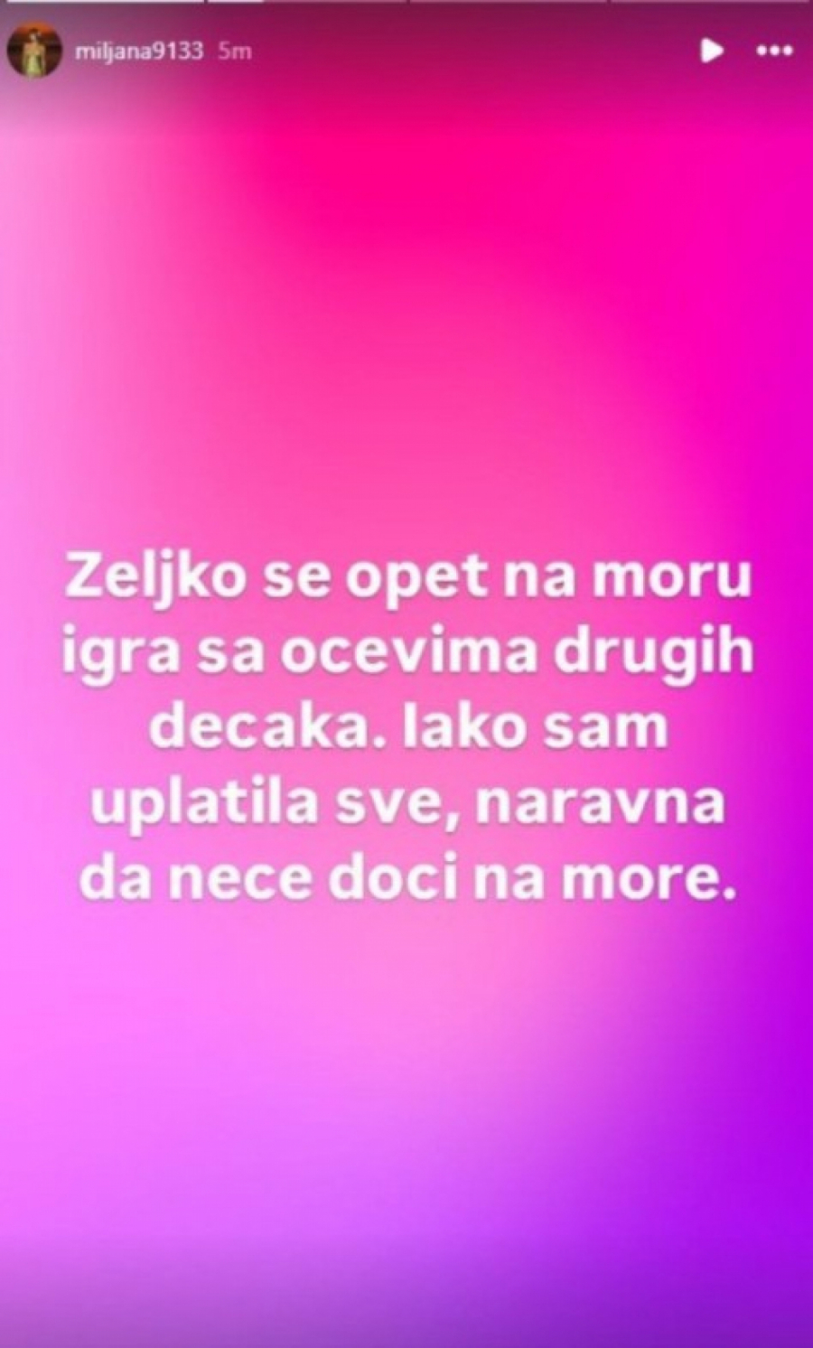 Porodično letovanje na koje je Miljana Kulić planirala da ode sa Ivanom Marinkovićem i njihovim sinom Željkom je propalo zbog čega rijaliti učesnica ne krije bes.