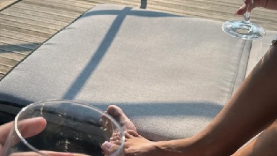 Na fotografiji koju je okačio na Instagramu vide se oni na jahti, a u prvom planu su čaše kojima nazdravljaju, kao i njihove noge.