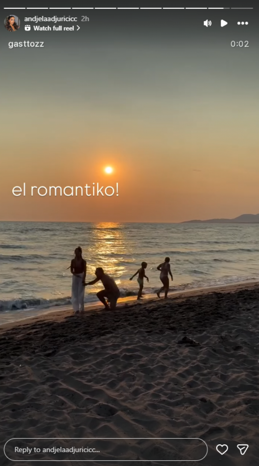 Tokom romantičnog trenutka, Gastoz se sapleo i pao u pesak, što je bilo simpatično i Anđeli, koja je objavila ovaj video snimak uz opis:
