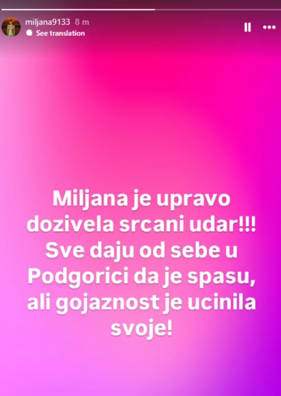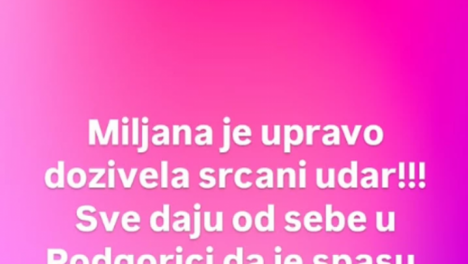 - Miljana je upravo doživela srčani udar! Sve daju od sebe u Podgorici da je spasu! Ali gojaznost je učinila svoje - pisalo je u pomenutoj objavi, a preneli su brojni mediji.