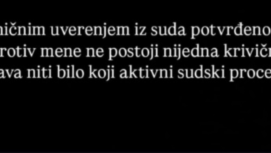 - Zvaničnim uverenjem iz suda potvrđeno je da protiv mene ne postoji nijedna krivična prijava, niti bilo koji aktivni sudski proces - istakao je Slavnić.