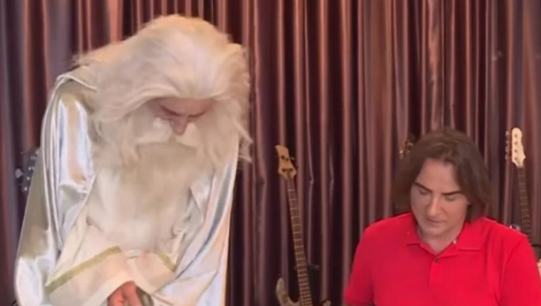 Pevač je na sebi imao dugu sedu kosu i bradu, dok je bio odeven u belo, a kako je Mitrović rekao, njemu su dodelili ulogu Gandalfa za ovogodišnju Elitu.