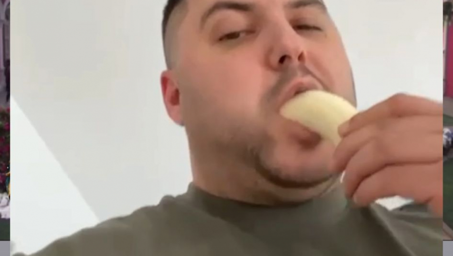 Asmin na snimku koji je Sita objavila, a koji se uveliko širi na mrežama jede bananu, a Ahmićeva ga oslovljava sa "Gulaš".