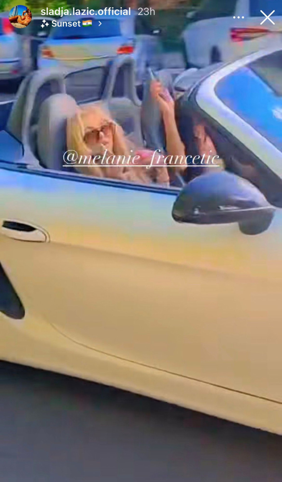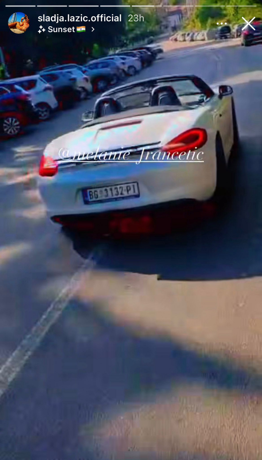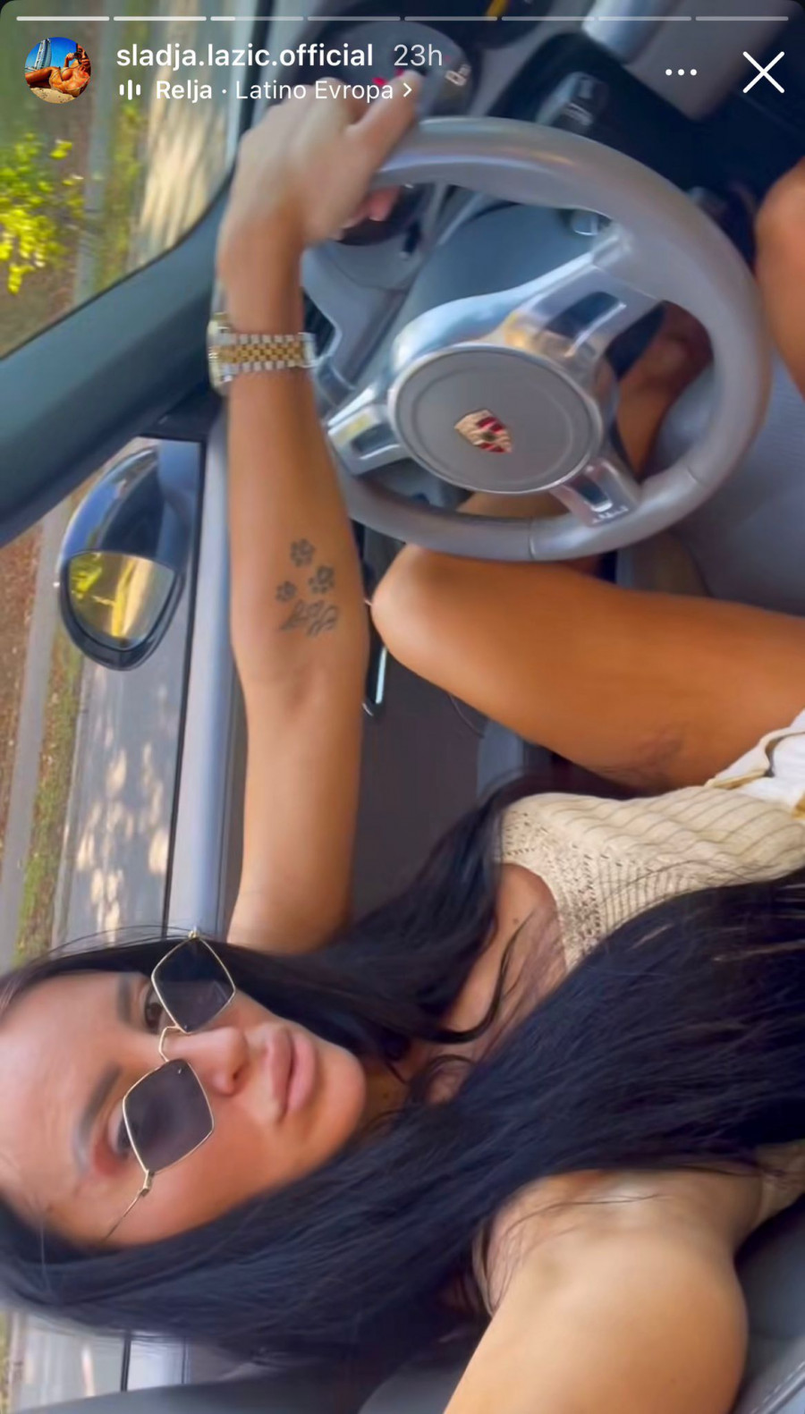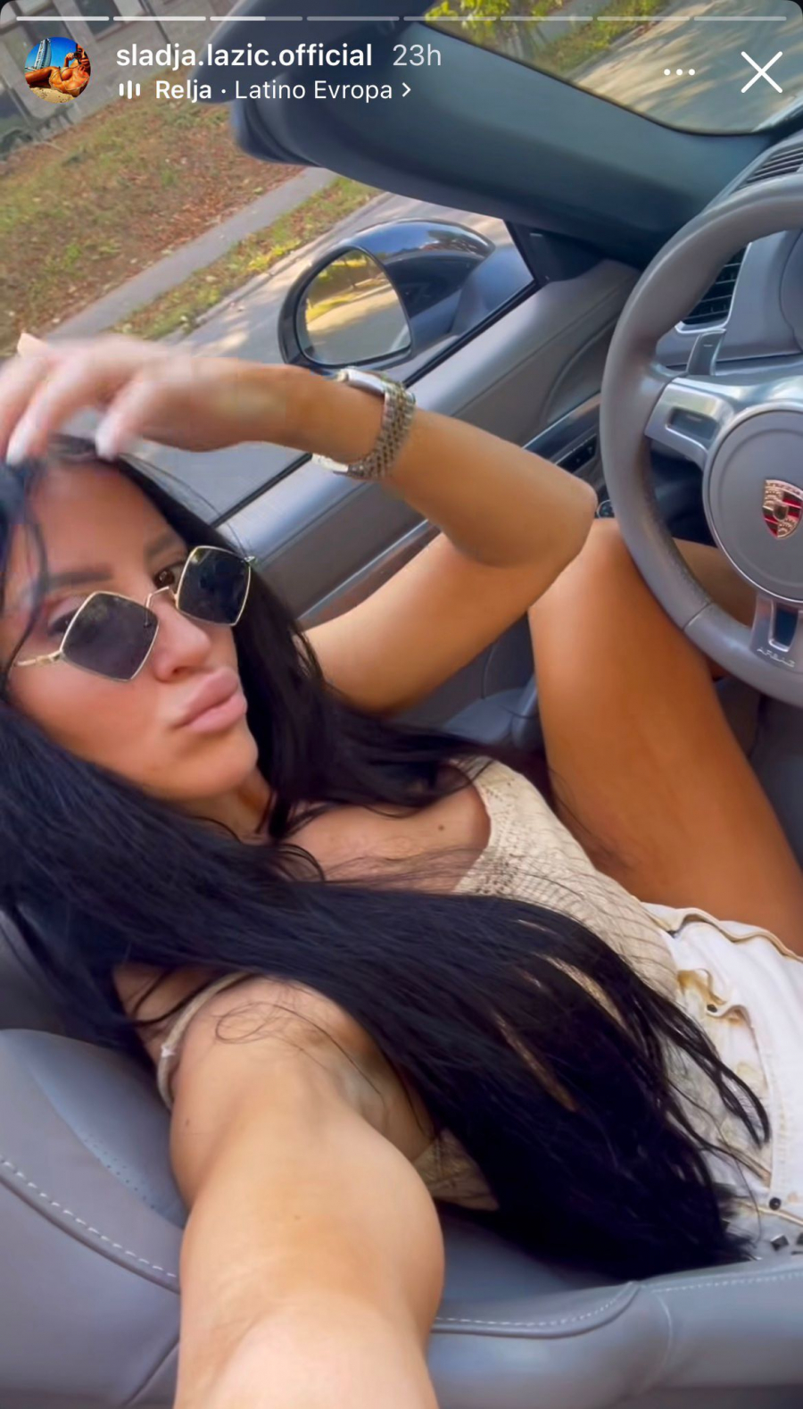 Slađa je u kratkom šortsu upravljala kaprioletom marke Porše Bokster čija se vrednost kreće do 50.000 evra za starije modele, i do 100.000 za one novije.