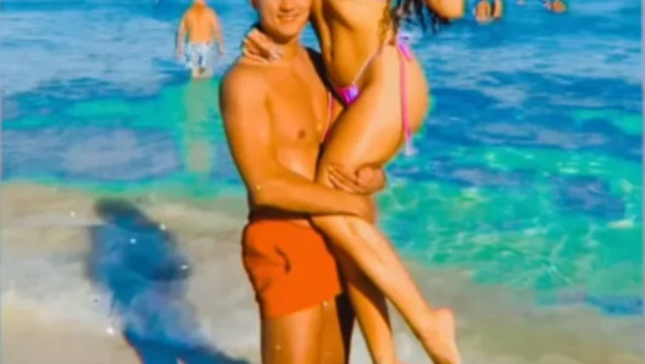 Na slici se vidi kako je Jovan podigao Enu dok poziraju nasmejani i opušteni, a pažnju je posebno privukao njen atraktivni kupaći kostim koji je istakao njenu figuru.