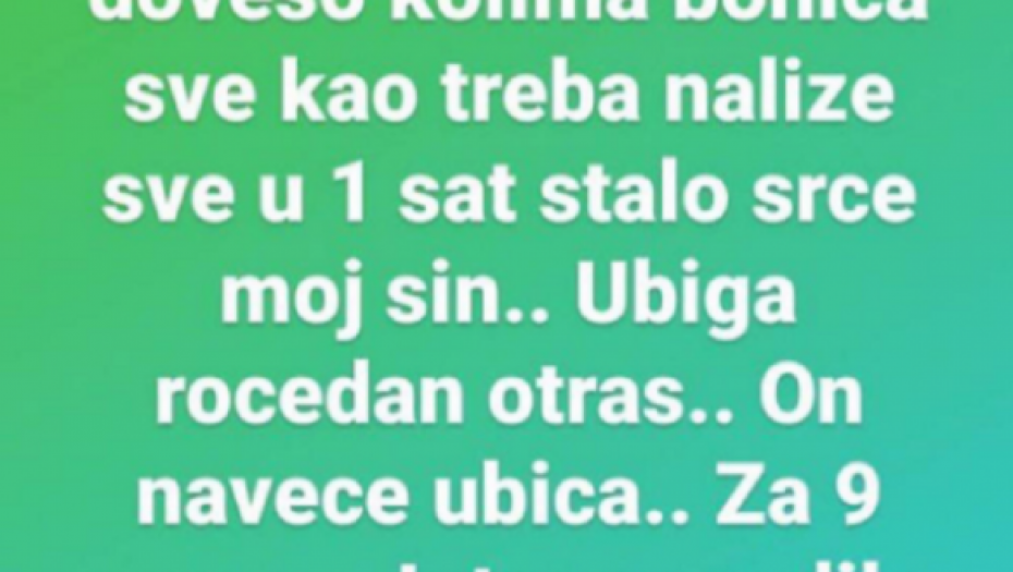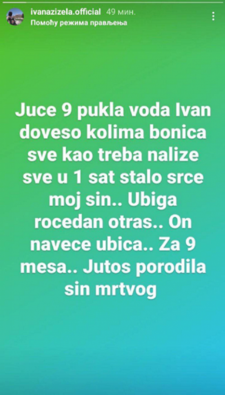 - Juče u 9 pukla voda, Ivan me je dovezao kolima u bolnicu. U 1 sat je stalo srce mom sinu. Ubio ga je rođeni otac. On je najveći ubića. Jutros sam porodila mrtvog sina - napisala je Ivana.