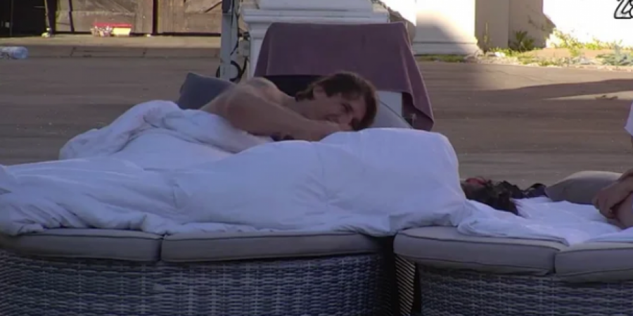 Kristina Spalević i Kristijan Golubović ponovo su završili zajedno na ležaljci pored bazena, a kako su rešili da zadremaju, uzeli su i pokrivač, pa se pokrili istim jorganom i neprestano se dodirivali.