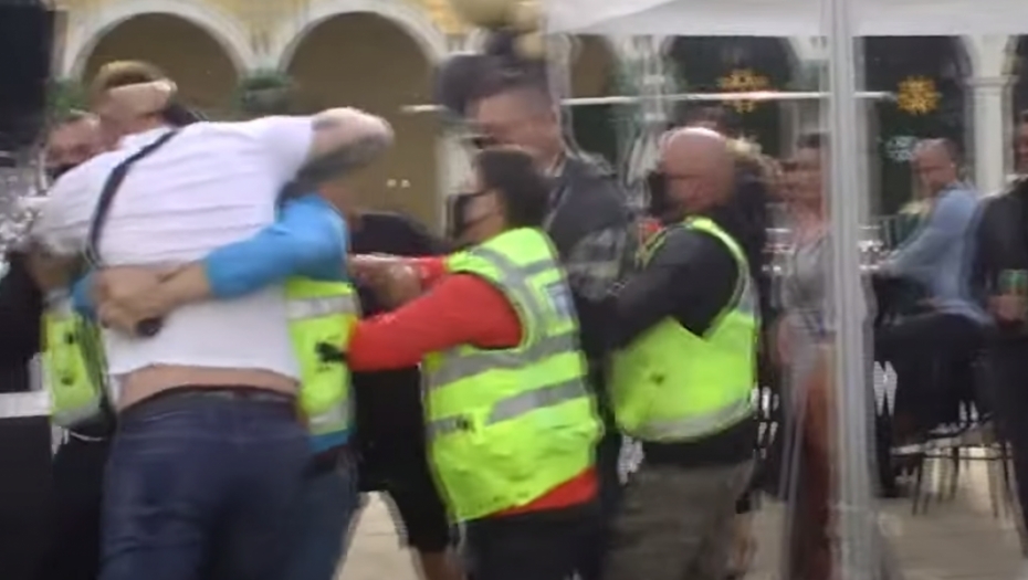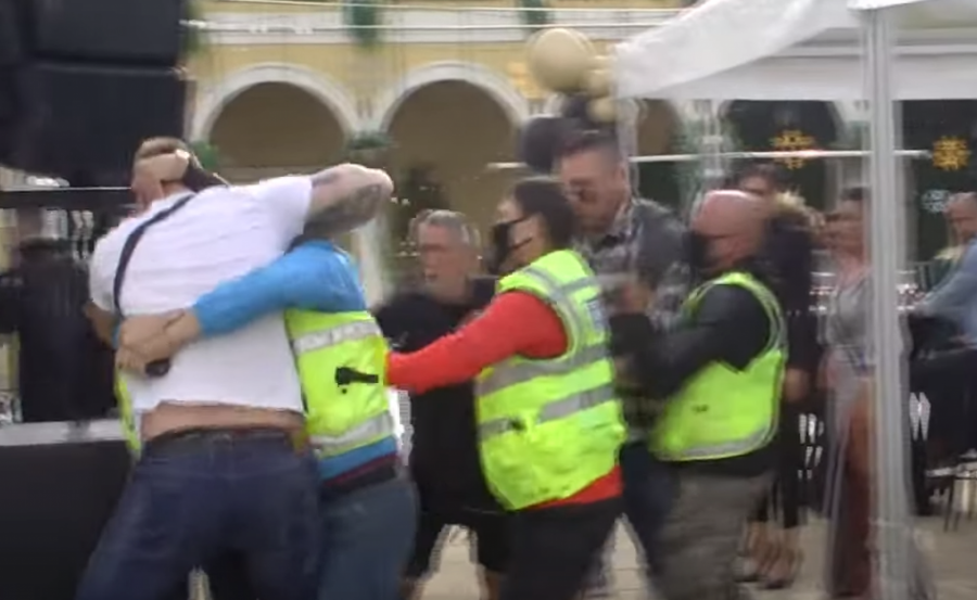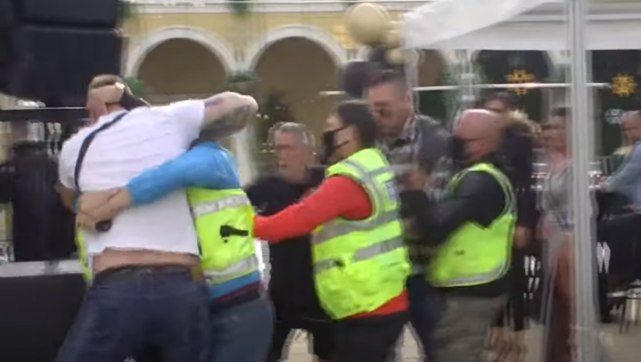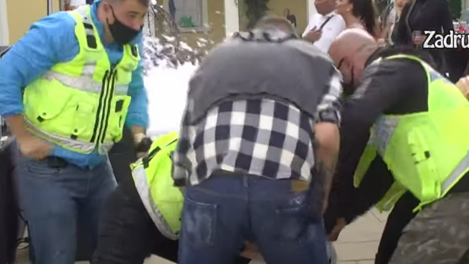 Obezbeđenje je odmah potrčalo ka njima, a potom su držali Janjuša dok je nasrtao na Marinkovićevu.