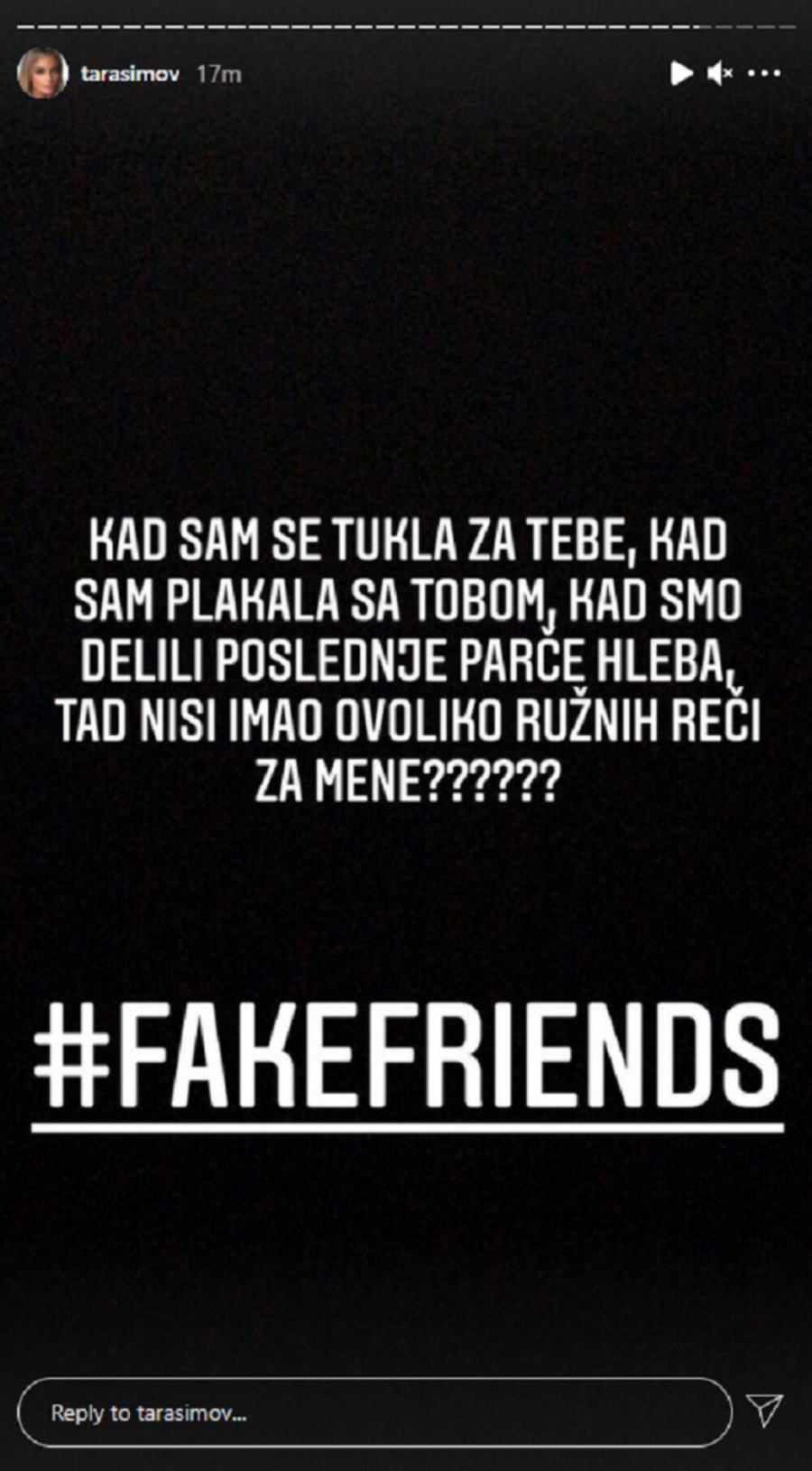 U galeriji pogledajte sve reči koje je Tara uputila bivšim prijateljima, ali i Nenadu Aleksiću.