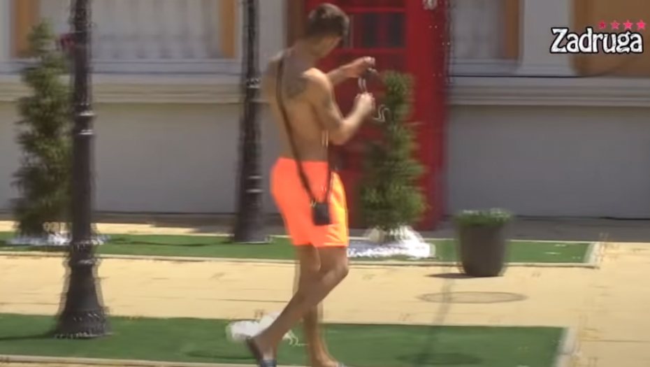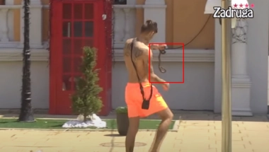 On je i danas uradio isto. On je pokraj bazena uhvatio zmiju dok ga je gledala Nataša Radan. Tom prilikom ju je uhvatio za vrat i tako je nosio po imanju, prišla je i Sanja Stanković da vidi o čemu se radi, a kada je ugledala veliki zmijurinu zaledila se.