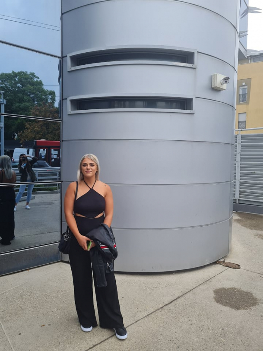 Ekipa Alo! portala nalazi se ispred Pinka i dočekuje nove učesnike Zadruge, a sledeća učesnica koja je stigla ispred zgrade pomenute televizije je Emilija Velimir.