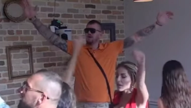U jednom momentu krenula nova pesma Slobe Radanovića, koja je Janjuša naročito pogodila, te je na sav glas zapevao: