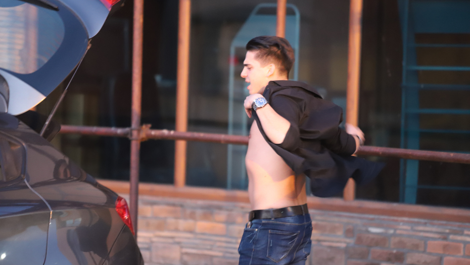 Najpre je skinuo košulju, a onda je otkopčao i pantalone. U trenutku nepažnje, one su se svukle više nego što treba pa mu je sevnula bu*a. Njega to nije potreslo, već je nastavio sa presvlačenjem i otišao do gepeka odakle je izvukao majicu koju je potom obukao. Kao i svaki egzibicionista nakon javnog performansa, ušao je u zgradu u kojoj se nalazio studio, te sa ostalim učesnicima programa, koji su se za razliku od njega sređivali u šminkernici, počeo sa odbrojavanjem 10, 9, 8...