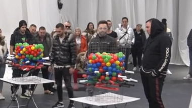 Njihov zadak je bio da mačeve koje drže loptice na pozicijama izvuku što više, a da što manje loptica upadne u kavez ispod. Đokić se pokazao kao uspešniji, te će njemu biti duplirani glasovi.