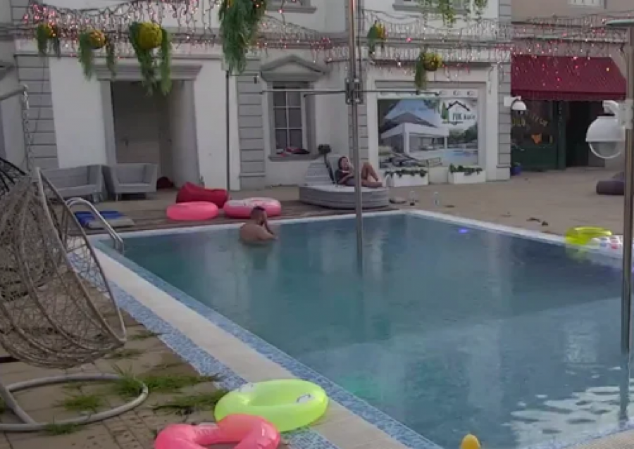 Dok je on plivao levo desno i dao sebi oduška, ona je sedela pored bazena i nepomično gledala u jednu tačku bez ijedne reči.