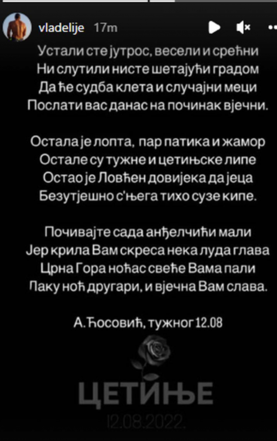 Cela Crna Gora je zavijene u crno, proglašena je trodnevna žalost, a Tomović objavom na Instagramu osudio sve zločine.