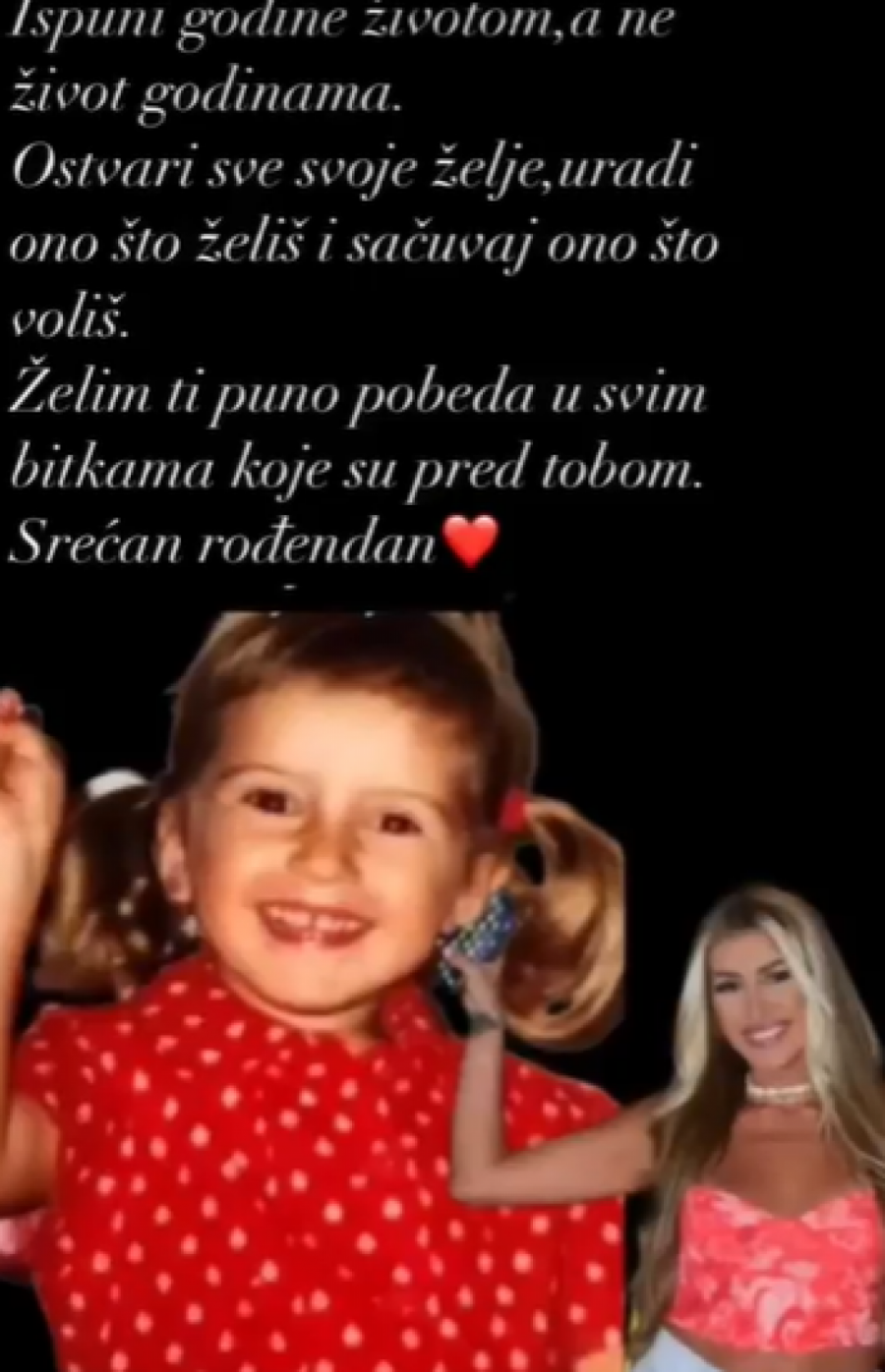 - Ispuni godine životom, a ne život godina. Ostvari sve želje, uradi ono što želiš i sačuvaj ono što voliš. Želim ti puno pobeda u svim bitkama koje su pred tobom. Srećan rođendan - pisalo je na jednom storiju koji je Dalila podelila.