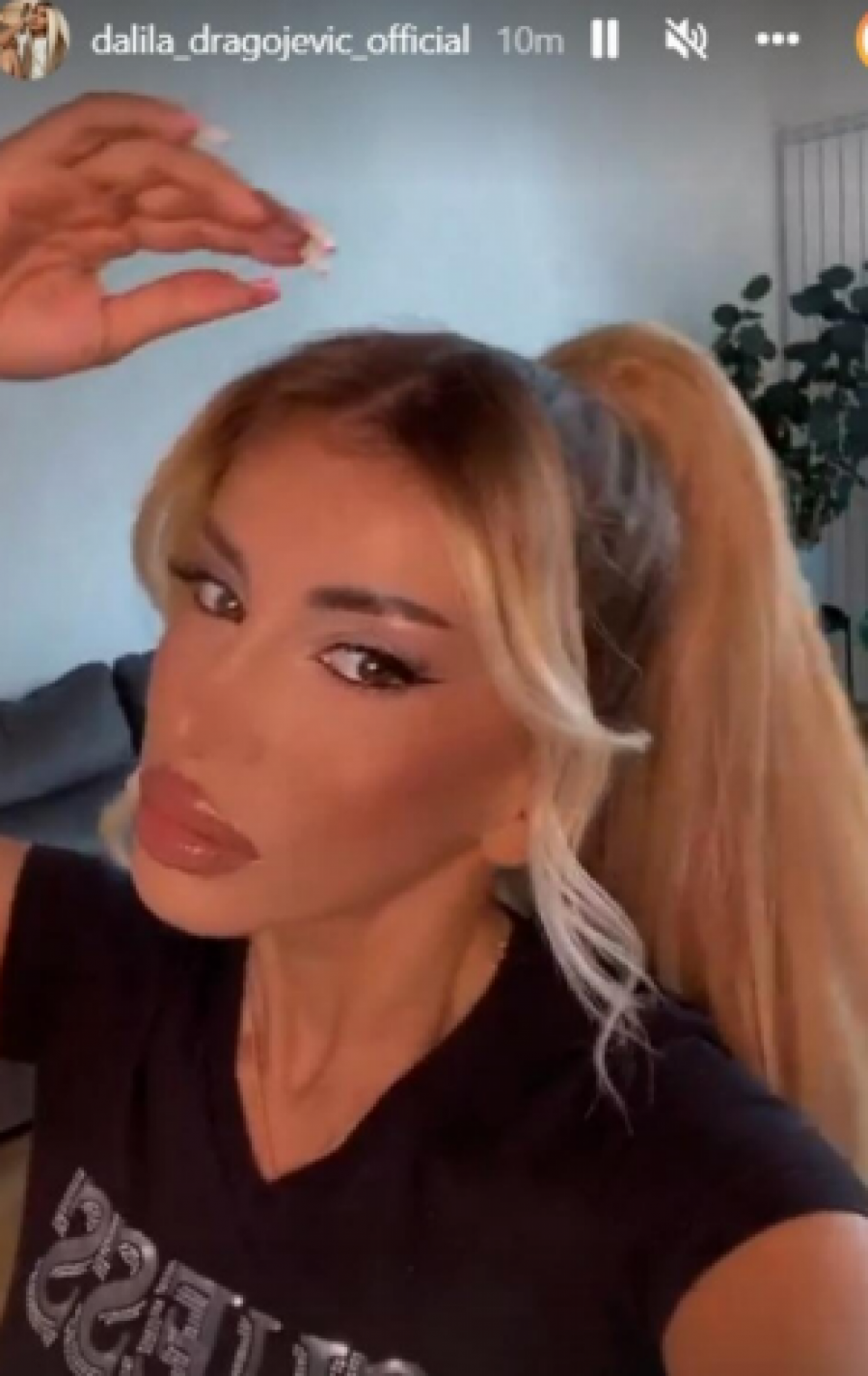 Dalila je uokvirila oči i naglasile usne šminkom, a izabrala je da nosi visok rep sa šiškama. Promenu je pokazala na društvenim mrežama kada je objavila zavodljiv snimak.