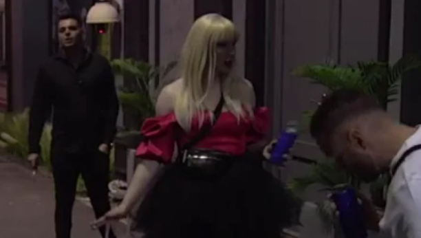 Ona je obukla crvenu majčicu i rnini suknju, sa crnim štiklama, a pre ulaska u samu diskoteku, ona je ispušila cigaretu sa zadrugarima.