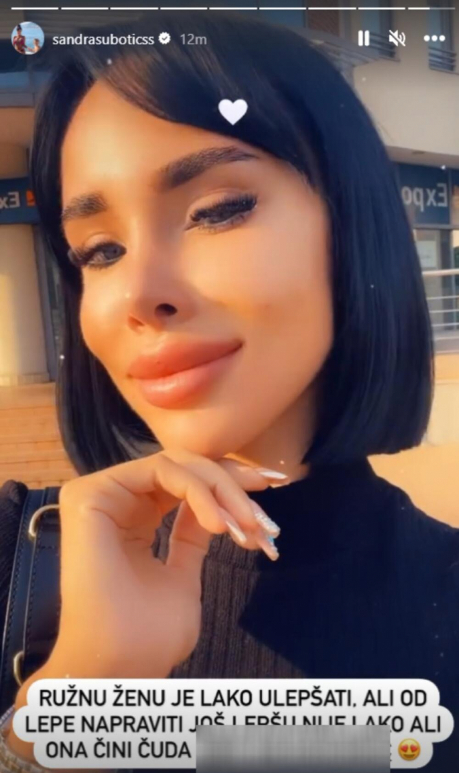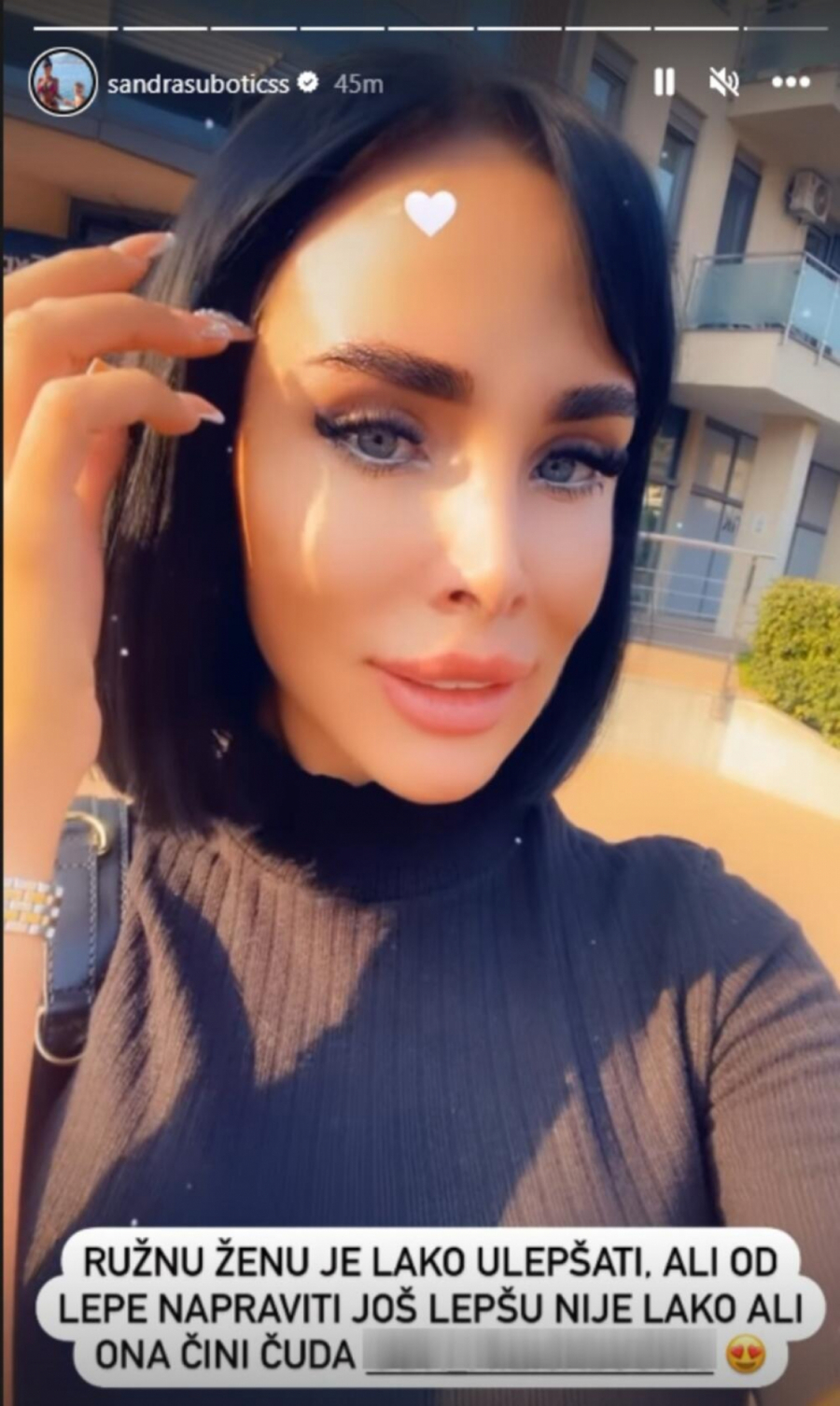 - Ružnu ženu je lako ulepšati, ali od lepe napraviti još lepšu nije lako - napisala je Subotićeva i pohvalila doktorku koja joj je radila lice.