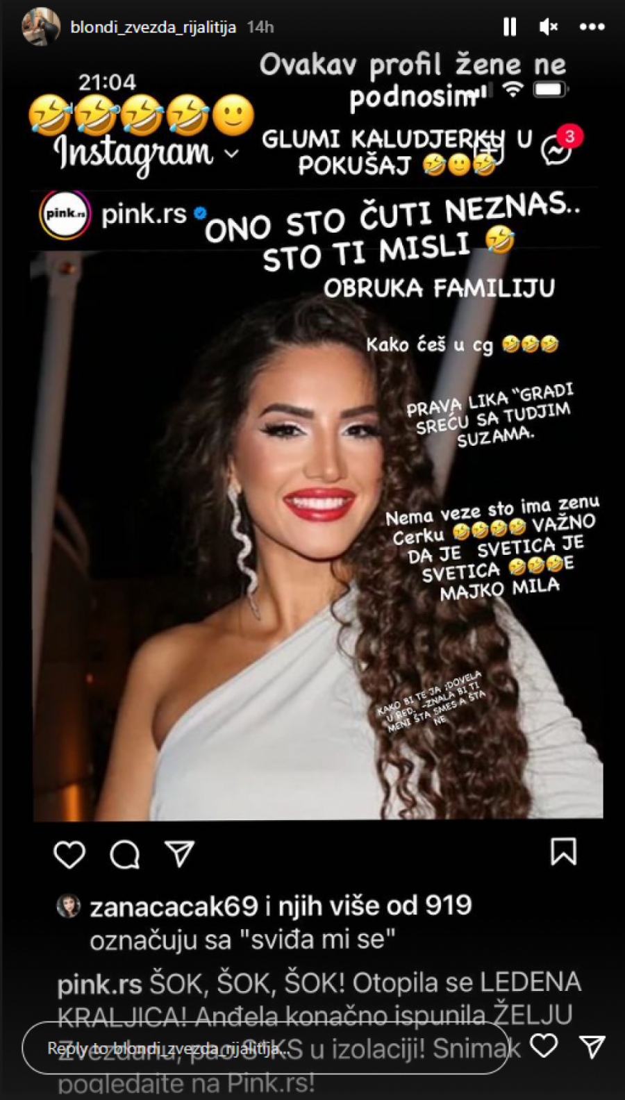 Svoje razočaranje ne krije i Anđelina sunarodnica i bivša zadrugarka Suzana Perović Blondi, koja je osula žestoku paljbu po Anđeli na društvenoj mreži Instagram.