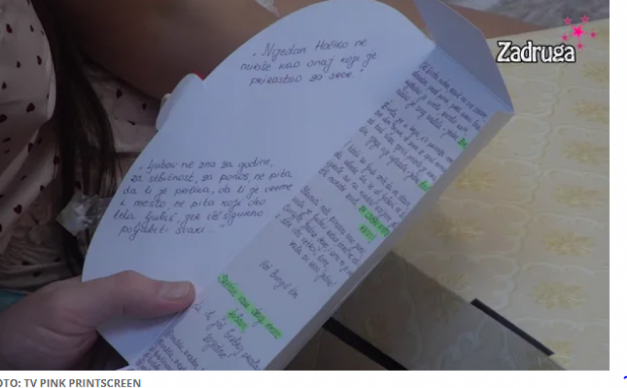 Tom prilikom, Anđela je videla da je dobila posteljinu za koju je sinoć molila podršku da im pošalje, a ljubavnici su zatim pročitali i čestitku koju su dobili.