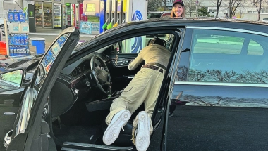 Tetovirani momak bio je u automobilu na benzinskoj pumpi, ali nije točio gorivo niti proveravao pritisak guma, a da mu se pritisak dizao, svedoči situacija u kojoj smo ga zatekli. Frana je usred bela dana, bez blama devojka skidala u automobilu i vrzmala se oko njegovog pojasa. Pre nego što su ušli u četvorotočkaš, oni su se domunđavali i pipkali ispred kola misleći da su bezbedni i da ih niko nije primetio.