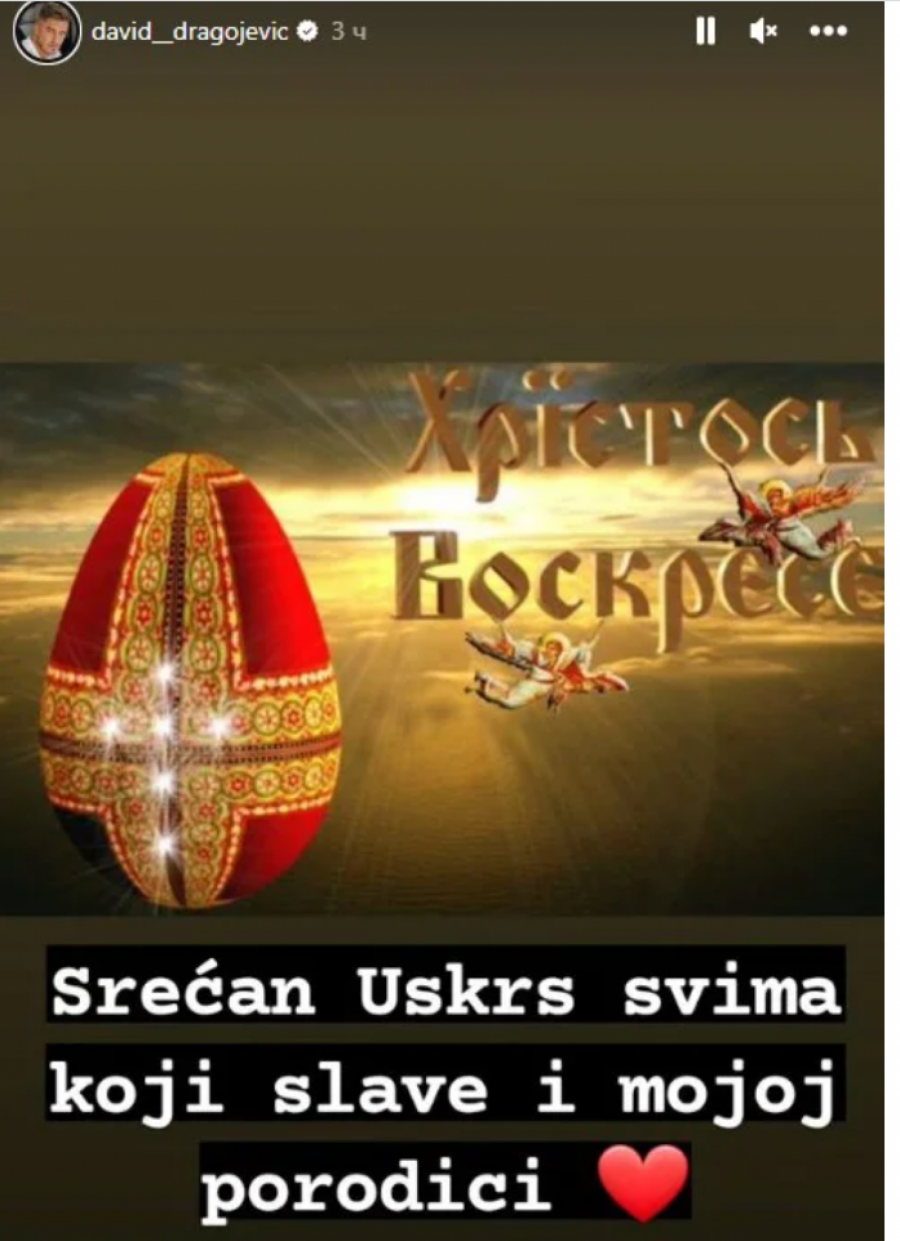 Naime, danas svi pravoslavni vernici proslavljaju Vaskrs, te je tako i u domu Dragojevića. Dejanov brat, David, podelio je fotografiju čestitke samog praznika, napisavši: