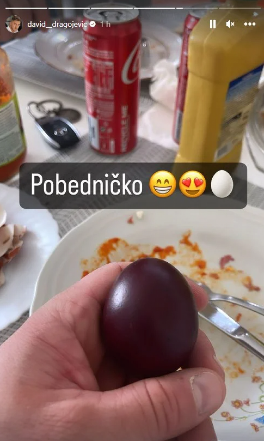Takođe, objavio je na instagram storiju da je danas u tradicionalnom tucanju jajima, on pobedio i da je baš njegovo jaje, pobedničko.