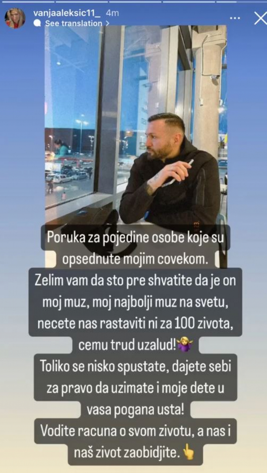 - Poruka za pojedine osobe koje su opsednute mojim čovekom. Želim vam da što pre shvatite da je on moj muž, moj najbolji muž na svetu, nećete nas rastaviti ni za 100 života, čemu trud uzalud! Toliko se nisko spuštate, dajete sebi za pravo da uzimate i moje dete u vaša pogana usta! Vodite računa u svom životu, a nas i naš život zaobiđite - napisala je Vanja, a nama ostaje da saznamo povod ovog storija.