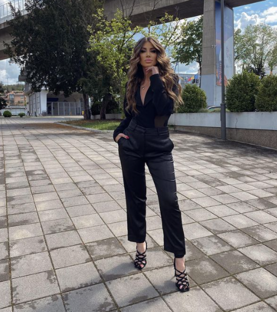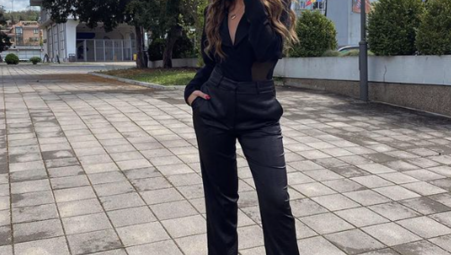 Dalila je pozirala u crnoj dekoltiranoj košulji, dok je dole imala satenske pantalone i vrtoglave štikle, a posebno je sve oduševila i Dalilina frizura na talase.