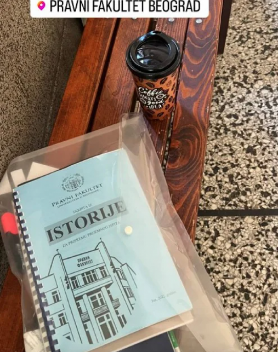 Naime, knjigu je odložila pored sebe, prilikom čega je otkrila da se nalazi na Pravnom fakultetu. što je mnoge zbunilo.