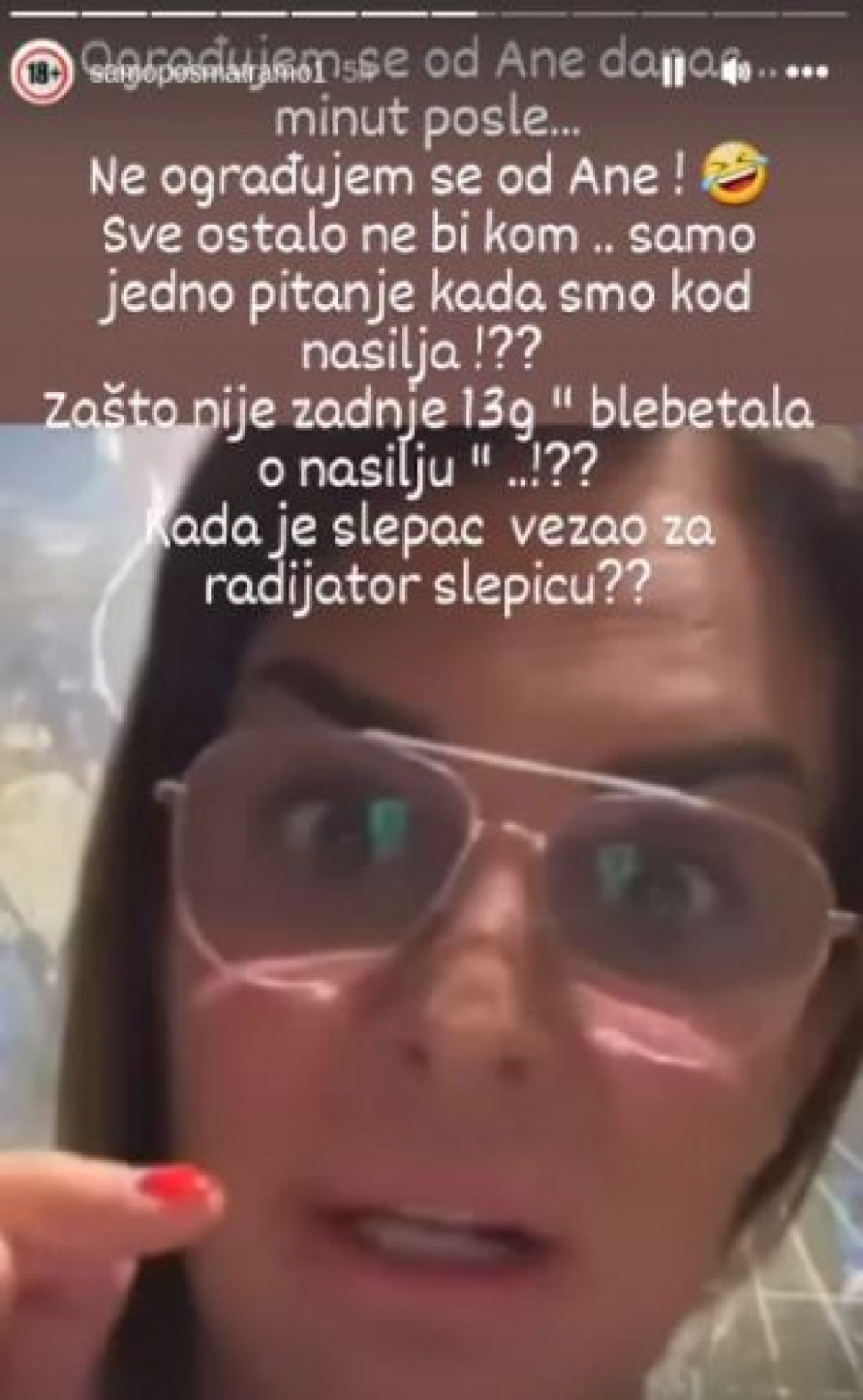 -Ograđujem se od Ane danas gospođo, danas se ograđujem. Ne ograđujem se inače, kad sam se ogradila? Zbog toga i jesam ovde. Neću da pričam o Zadruzi danas! Ni kada će dobiti stvari, ni da li će dobiti stvari, jer je neko danas sahranio ćerku. A ako ćete još jednom da me pitate, nosite se u tri pi*ke materine, do daljnjeg neće biti tema! Sad se svi pitaju, a kad sam ja blebetala onda su znali da me "offline" - kuma blebeće o nasilju! Da ne uđe onaj slepac tamo i da nije ona moja slepica tamo, bilo bi pitanje kad bi i njoj nosili nešto na sahranu, znate?! - pričala je vidno izrevoltirana Milena u lajvu.