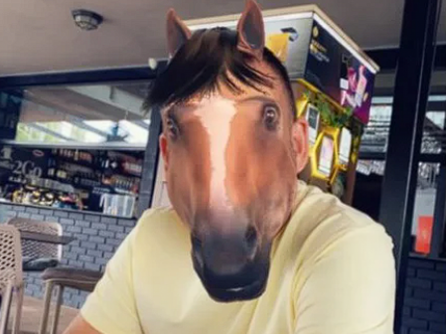 Pored toga, on se našalio i na svoj svoj račun, te je na svom storiju podelio sliku sebe sa filterom gde mu usesto svoje glave stoji glava konja što je sigurno nasmejalo sve njegove pratioce ali i decu koja su bila sa njim.