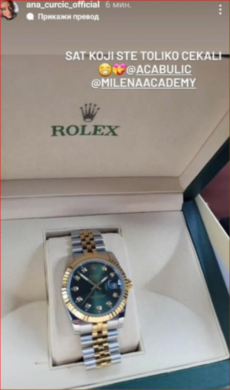 Sada se Ana oglasila na društvenoj mreži Instagram i pohvalila se da je Aca ispunio obećanje i poklonio joj skupoceni sat.