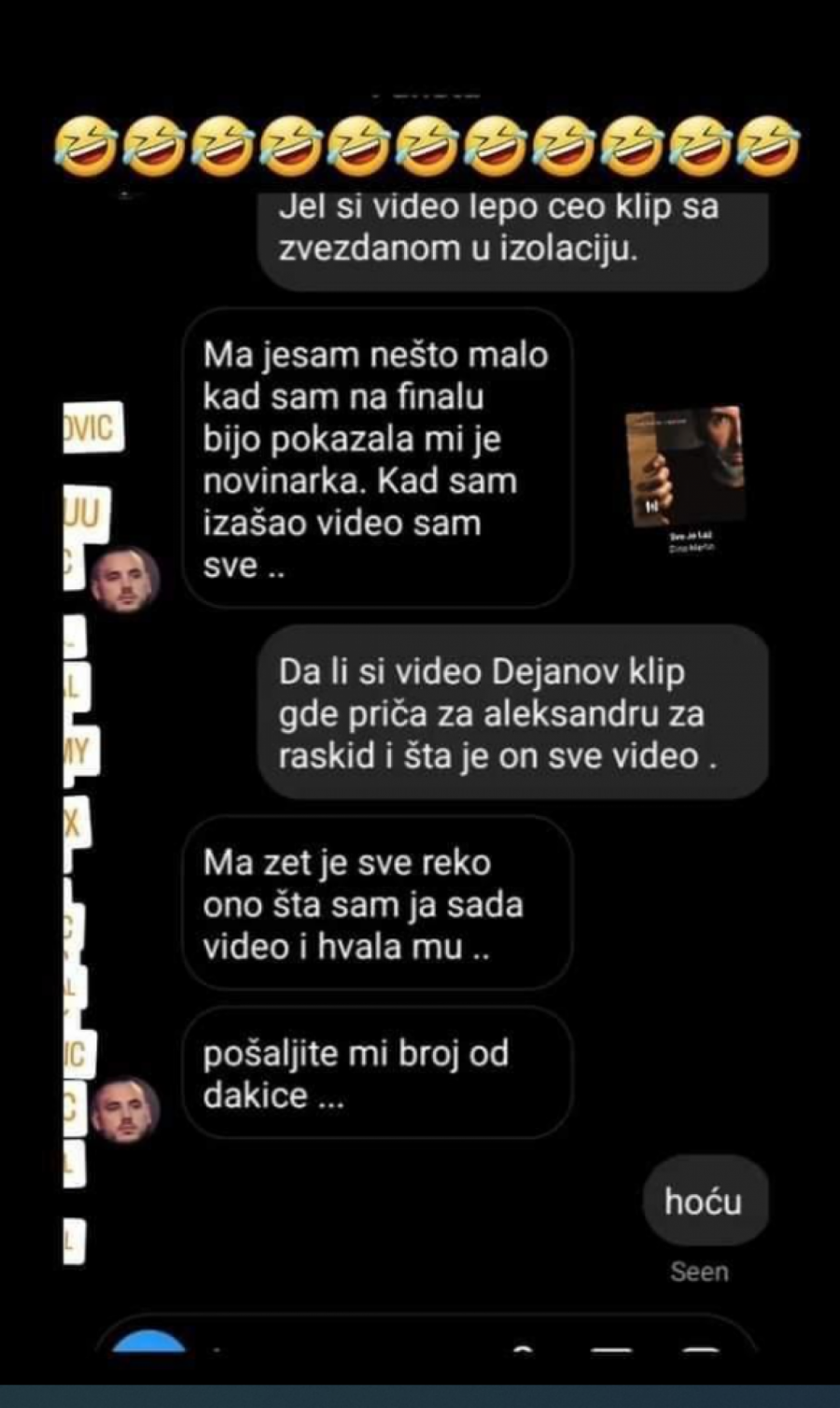 Naime, Filip Car tražio je broj bivše devojke Dalile Dragojević, a potom je priznao da bi pre oženio Divnu DNK nego Aleksandru, kao i da je video njen klip iz izolacije sa Zvezdanom.