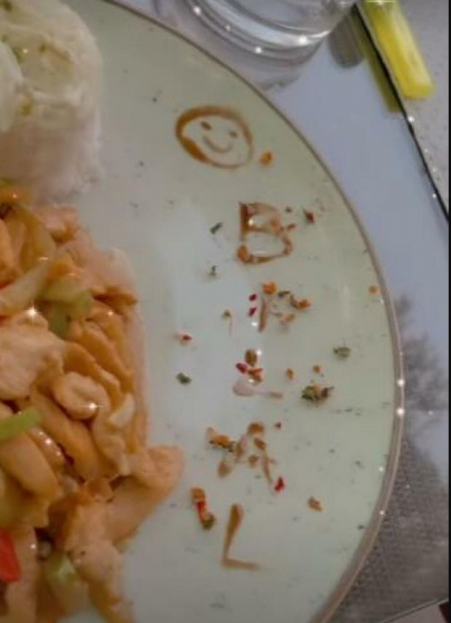 Naime, tokom zajedničke večere, crtali su po tanjirima svoja imena i stavljali srca, što ukazuje koliko su podetinjili i koliko uživaju u malim znacima pažnje.