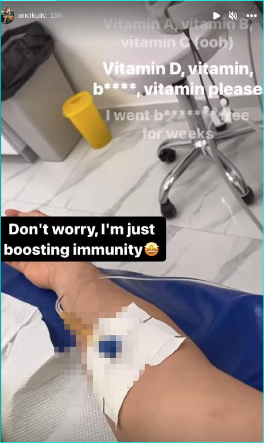 Nije jasno zašto je zabrinula pratioce ovom objavom, jer u opisu videa piše da je to infuzija za imunitet, te da je sve u redu, budući da prima vitamine.