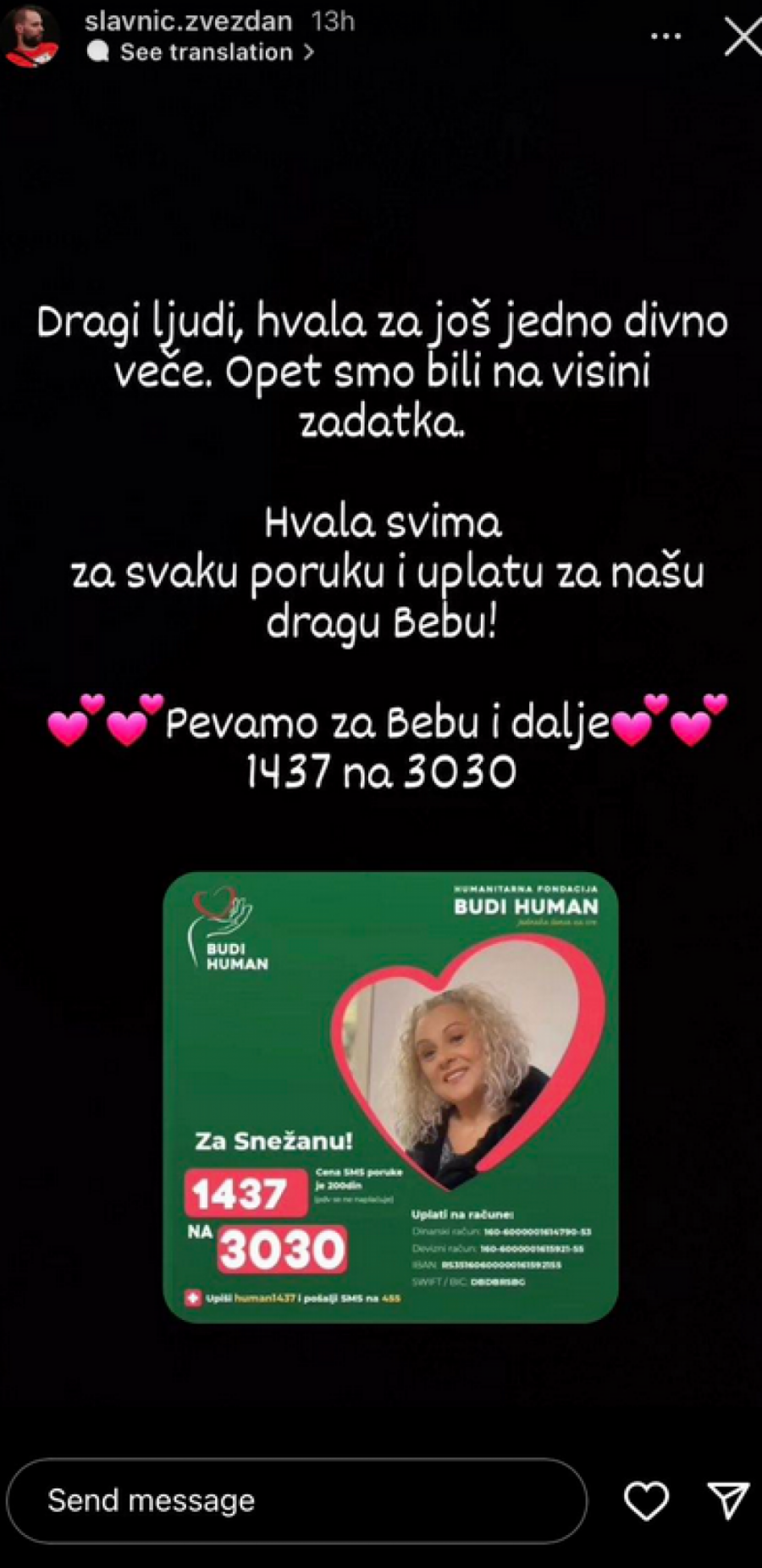 Tom prilikom, zvanično, njen bivši izabranik Zvezdan Slavnić se nije oglašavao, ali je okačio Instagram stori koji nema veze sa celom situacijom, pa možemo da zaključimo da ga pomirenje uopšte nije pogodilo.
